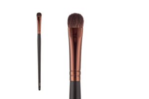 Profesionalus minkštas kampuotas šepetėlis puriais šereliais, skirtas tepti hailaiterį, skulptorių, bronzantą ir kitas kosmetikos priemones.